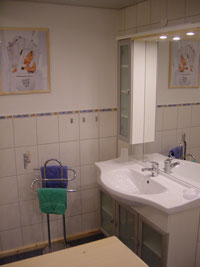 Waschbereich. Kosmetikspiegel, Fön und Heizung gehören