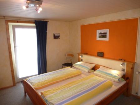 und Doppelbett. - Zugang zu Balkon und Badbereich.